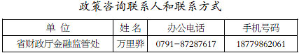 政策起止时间:自政策发布之日起至疫情解除之日止,发生的有关担保业务均可享受此政策。操作流程:省融资担保公司已推出“抗疫担保贷”,全省政府性融资担保机构可通过电话、网络、快递等方式受理业务、办理审批。对于纳入国家融资担保基金支持的、2020 年新发生的单户金额在100万元及以下的再担保业务免收再担保费,并长期坚持。对疫情防控重点保障企业及受疫情影响较大企业,新增融资担保业务费率不超过1%。省融资担保公司对疫情防控重点保障企业和疫情防控专项产品,适当提高再担保风险比例;省市两级担保再担保机构减半收取再担保费,对受疫情影响严重企业,如果担保机构已免收担保费,则免收再担保费。支持额度:由申请企业、融资担保机构、银行机构协商确定。牵头部门及组织实施单位:省金融监管局牵头,人行南昌中心支行、江西银保监局,各市、县(区)人民政府、赣江新区管委会配合。