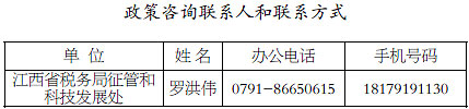 政策起止时间:2020年2月份法定纳税申报期限延长至2月24日;其他政策暂无截止时间。操作流程:纳税人、缴费人尽量选择江西省电子税务局、手机APP、自然人扣缴客户端、邮寄办税等“非接触式”的办理途径。对到办税服务厅现场办理的,通过上述网络和有关电话预约。延期缴纳税款的,应当在纳税申报期限(包括经核准延长的纳税申报期限)内提出申请,经核准后自申报纳税期限起算,最长不超过3个月。延期申报,由纳税人向主管税务机关申请办理;延期缴纳税款,纳税人可以选择由其主管税务机关代为向省税务局转报,省税务局及时予以办理,延期申报纳税期限和延期缴纳税款期限内不征收滞纳金。支持额度:上述事项没有任何费用。牵头部门及组织实施单位:江西省税务局牵头,全省各级税务机关组织实施。