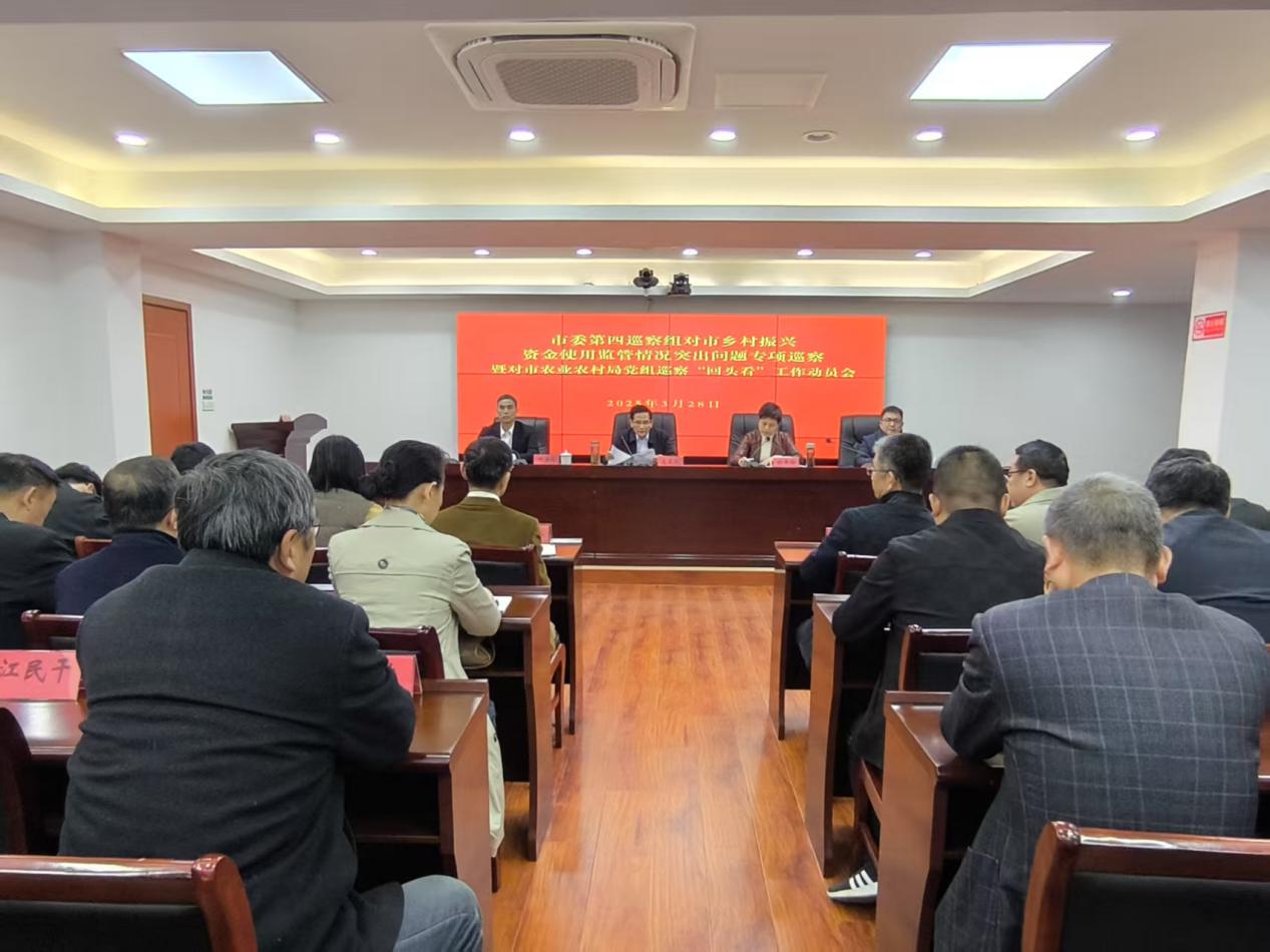 根据市委统一部署,2025年3月28日,市委第四巡察组对全市乡村振兴资金使用监管领域开展专项巡察暨对市农业农村局党组开展巡察“回头看”工作动员会召开。