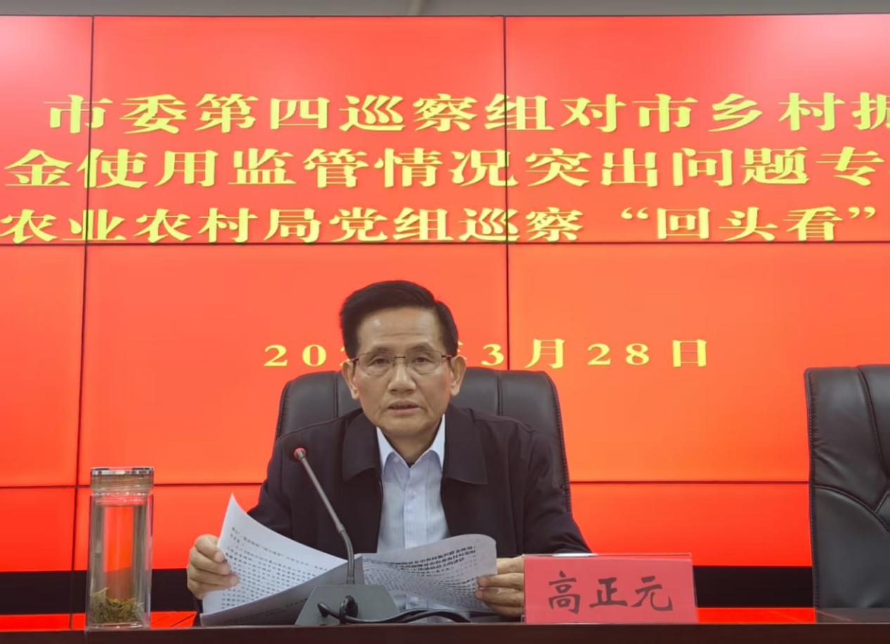 高正元指出,巡视巡察是党章赋予的重要职责,是推进党的自我革命、全面从严治党的战略性制度安排。市委部署对全市乡村振兴资金使用监管领域开展上下联动专项巡察,同时对市农业农村局党组开展巡察“回头看”,目的是充分发挥巡察震慑、遏制、治本功能,集中深入查找并推动解决乡村振兴资金使用监管领域存在的普遍性、系统性问题,以及群众身边的不正之风和腐败问题,促进完善制度、堵塞漏洞、深化治理,不断提高群众获得感、幸福感、满意度。市农业农村局和相关市直单位党组织以及各级党员领导干部要本着对党忠诚和对事业高度负责的态度,积极支持配合市委巡察组工作,共同完成好市委交给的巡察任务。